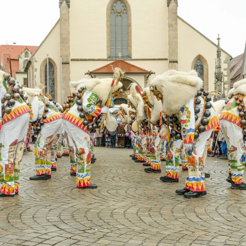 „Der Tanz der Ahlande“ krönt die Rottenburger Fasnet. In wirbelnden Schritten und klingenden Schellen entfaltet sich ein Schauspiel voller Kraft und Rhythmus. Es ist ein funkelndes Spiel, das Herz und Sinne betört und Augen wie Ohren verzaubert.