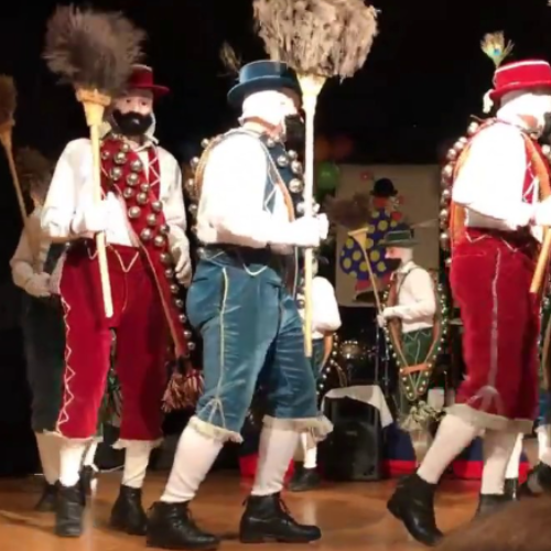 Die Nüssler tanzen einen sehr eigentümlichen Tanz zum Trommeln des Tambouren, der an die Bewegungen von Marionetten erinnert und die Schellen zum Klingeln bringt.